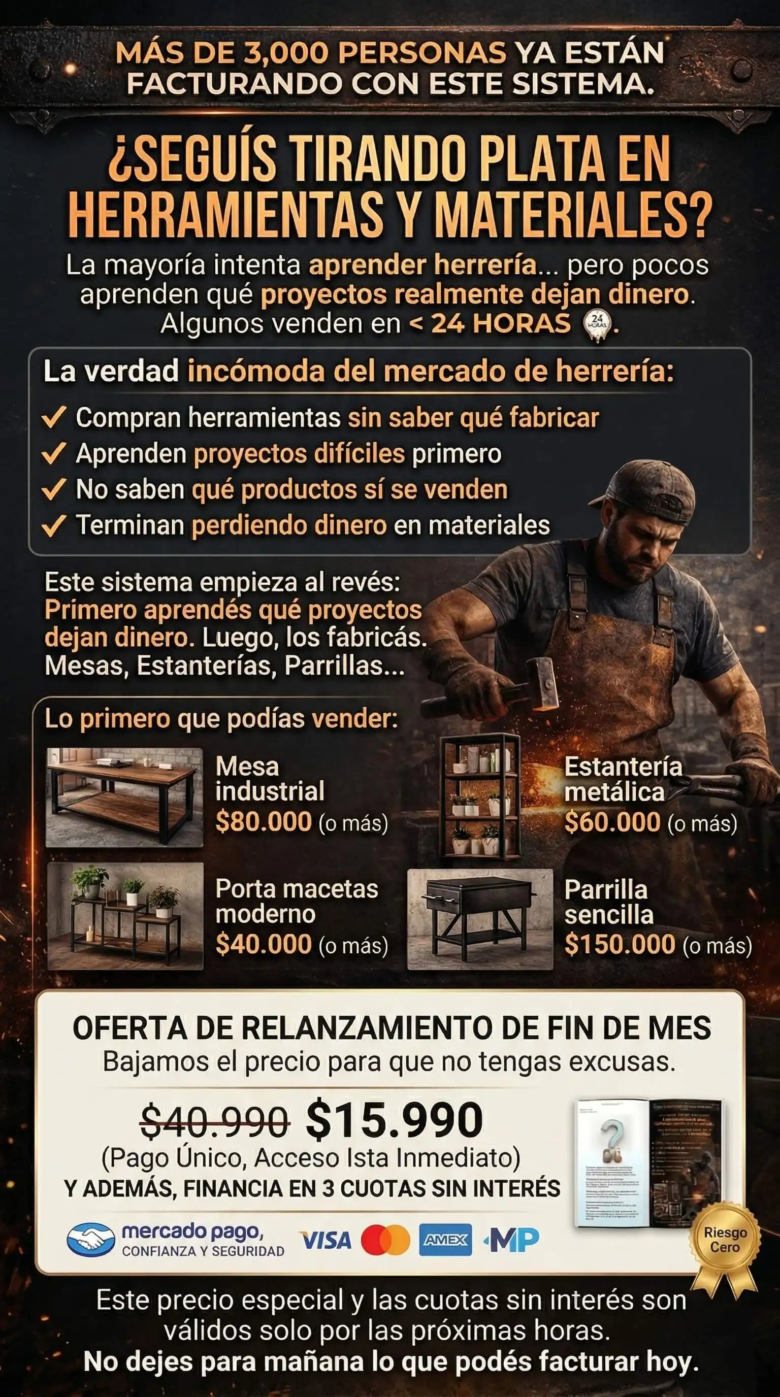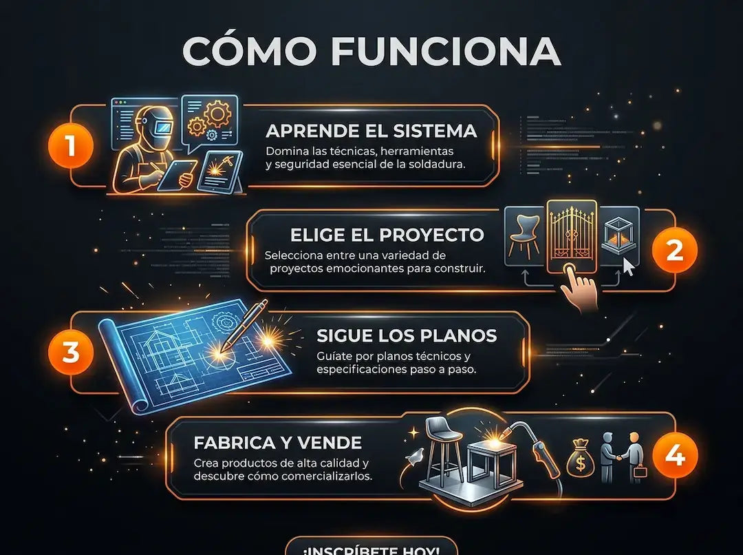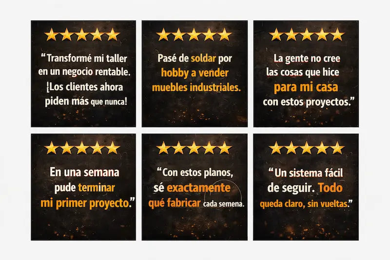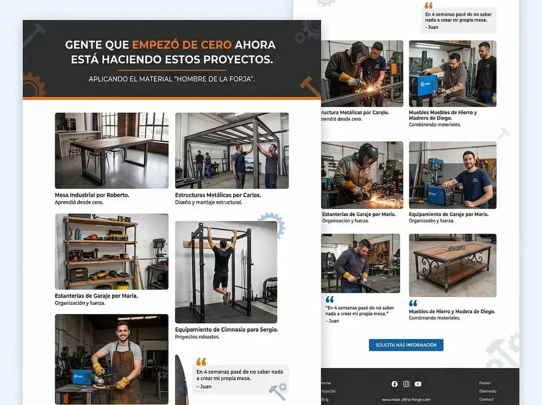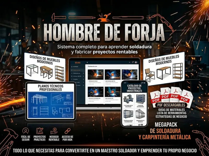 Vas a recibir acceso inmediato al sistema digital Hombre de Forja, que incluye más de 600 proyectos de herrería con planos y medidas claras, listos para fabricar en tu taller.